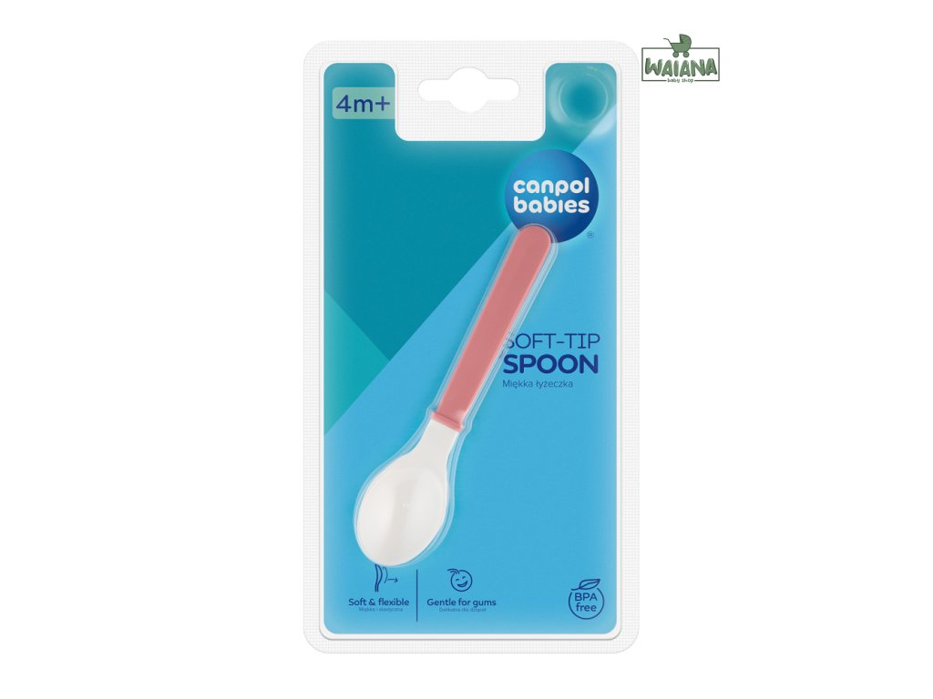 Mäkká plastová lyžička je ideálnou voľbou na zavádzanie príkrmov u vášho dieťaťa. Odporúča sa pre deti staršie ako 4 mesiace. Lyžička je bezpečná a je tiež ideálnou voľbou pre prvé pokusy o samostatné kŕmenie. Tvar a veľkosť lyžičky bol navrhnutý pre malé ústa dieťaťa a zaoblené hrany sú šetrné k citlivým ďasnám. Mäkká lyžička je vyrobená z testovaných a bezpečných materiálov, počas výrobného procesu nie sú používané žiadne škodlivé látky, produkt neobsahuje BPA. Dostupné v dvoch farebných variantoch.