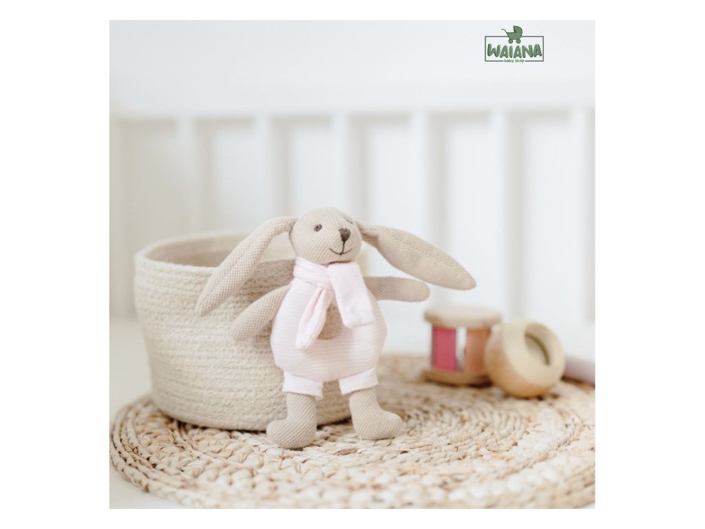 Mäkká hrkálka Zajačik je skvelá prvá hračka pre dieťa. Je mäkká a jemná, z mimoriadne jemnej bavlny príjemnej na dotyk. Hrkacie prvky povzbudia dieťa pri hraní a majú pozitívny vplyv na rozvoj sluchu dieťaťa. Vďaka svojmu tvaru sa ju dieťa ľahšie naučí uchopiť. Hrkálka je k dispozícii v dvoch dizajnoch – pastelové jemné farby určite zaujmú chlapcov aj dievčatá. Zajačik je ideálny na túlenie a ako prvý spoločník na hranie.