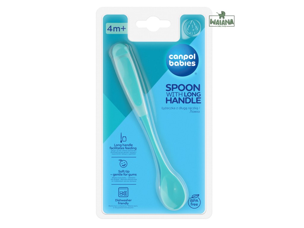 Praktická lyžica s dlhou rúčkou uľahčuje kŕmenie dieťaťa a vyberanie jedla z pohára. Má mäkkú špičku. Zaoblené okraje nedráždia jemné ďasná dieťaťa. Lyžica bude užitočná pri rozširovaní jedálnička. Z bezpečných materiálov bez obsahu BPA. Môže sa umývať v umývačke. Pre deti od 4 mesiacov.