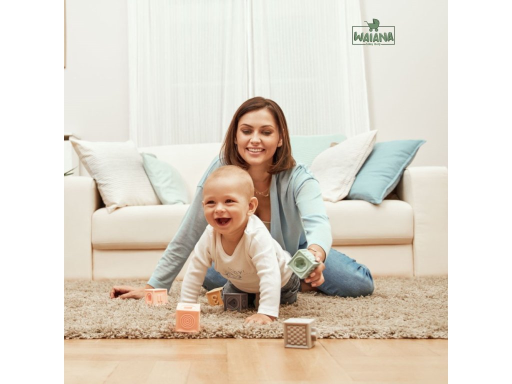 Farebné senzorické kocky sú vhodné pre deti od 6 mesiacov. Tieto kocky sú ideálne pre mladšie aj staršie deti. Vďaka svojim zaujímavým tvarom a farbám stimulujú rozvoj zrakovo-sluchovej a motorickej koordinácie dieťaťa. Kocky majú vypuklé steny, ktoré umožňujú ich spájanie. Každá kocka obsahuje rôzne tvary, zvieratká a tiež čísla pre staršie deti. Pri stlačení vydávajú zvuky. Vďaka svojej štruktúre sa dajú používať ako hryzačka. Vynikajúce ako prvý darček.