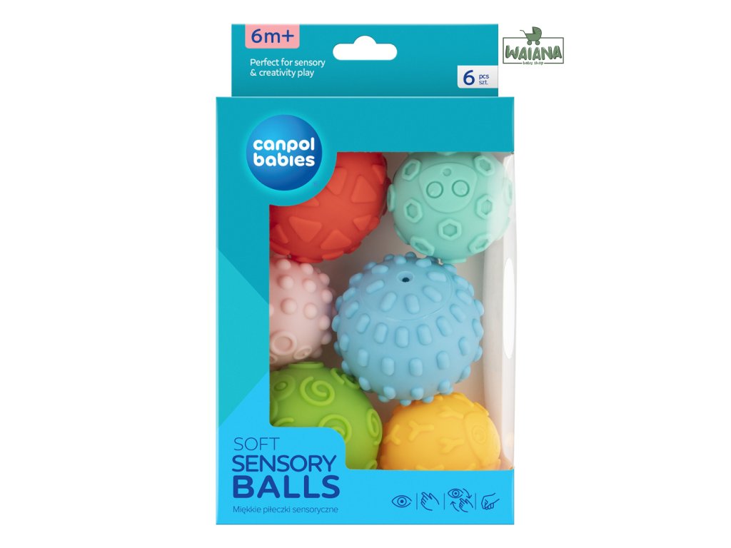 Jemné senzorické loptičky sú určené predovšetkým na zábavu a objavovanie v prvých mesiacoch života bábätiek. Tieto loptičky pomáhajú rodičom podporiť vývoj ich bábätiek vo veľmi rannej fáze. Rozmanité tvary a materiály poskytujú rôznorodé senzorické vnemy. Umožňujú trénovať úchop a stimulovať dotyk. Svieže, veselé farby povzbudia malé stvorenia k aktivite a hre. Loptičky môžu byť taktiež použité pre jemnú masáž. Set obsahuje 6 loptičiek rôznych farieb, ktoré sú zabalené v atraktívnej darčekovej krabici a neobsahujú BPA.