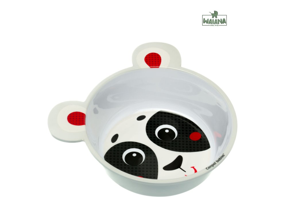 Farebná miska netypického tvaru je vyrobená z kvalitného melamínu so zatavenými farebnými motívmi (nedostávajú sa do kontaktu s jedlom). Protišmykové dno zabraňuje kĺzaniu misky po doske stola. Úchyty uľahčujú jej pridržiavanie alebo prenášanie.