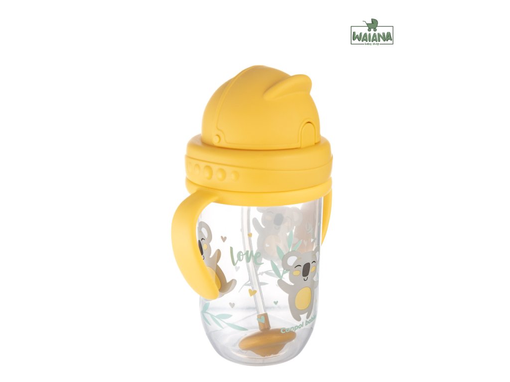 Canpol babies netečúci hrnček so slamkou so závažím 270ml 6m+ Exotic Animals žltý