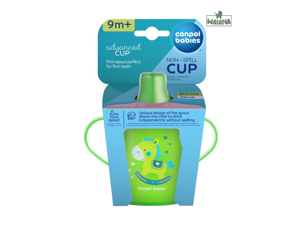 Canpol babies Nevylievací pohár tvrdý 250 ml TOYS zelený