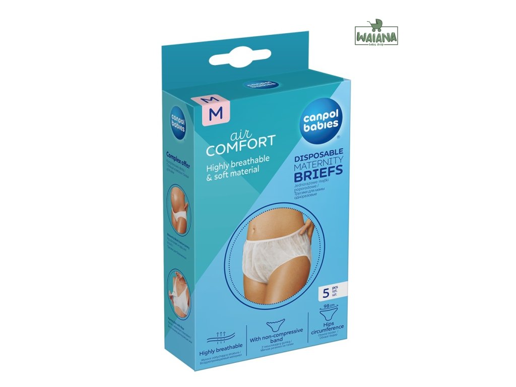 Jednorázové hygienické nohavičky sú určené na použitie v období po pôrode. Sú vyrobené z mäkkých, jemných vlákien, ktoré nedráždia pokožku a dobre prepúšťajú vzduch. V páse a okolo nohy sú zakončené jemnou gumou. Z hygienických dôvodov je každý kus zabalený zvlášť. Dodávajú sa v troch rozmeroch: M/L, L, L/XL (veľkosť je uvedená na obale). Po použití nohavičky zabaľte a vyhoďte do odpadkového koša.