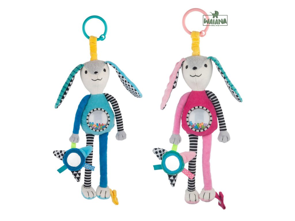 Hračka má živé, intenzívne farby, je mäkká a príjemná na dotyk. Obsahuje množstvo interaktívnych prvkov: hrkálku, zrkadlo, šuštivé časti – rôzne tvary a materiály s rôznymi textúrami. Vďaka tomu poskytuje hračka dieťaťu skvelú zábavu na dlhý čas a stimuluje rozvoj jeho zrakovej, sluchovej a motorickej koordinácie. Hračka má univerzálnu odľahčenú sponu na upevnenie ku kočíku/postieľke/autosedačke. Hračka je z bezpečných materiálov. Určené pre deti hneď od narodenia.