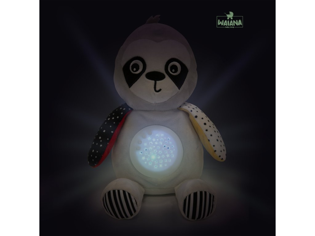 Senzorická hračka s melódiami a projektorom BabiesBoo 3v1 je skvelým spoločníkom pri každodennom zaspávaní a hraní každého bábätka. Mäkká senzorická hračka v kontrastných farbách, ktoré novorodenci vidia ako prví, podporuje správny vývoj detského zrakového vnímania. Projektor s melódiami je schovaný v brušku hračky, obsahuje melódie, ktoré upokojujú a tíšia bábätko, čím uľahčujú zaspávanie. Hračku je ľahké udržiavať v čistote – po vybratí projektora je možné plyšovú hračku umývať v ruke. Hračka má 3 prevádzkové režimy: môže zobrazovať svetelnú projekciu (hviezdy) a prehrávať melódie, prehrávať iba melódie alebo premietať len tlmené svetlo, čím funguje ako nočné svetielko. K dispozícii je 12 upokojujúcich melódií, vrátane jemných prírodných zvukov, spevov vtákov a tlkotu srdca. Hlasitosť je možné nastaviť podľa preferencií bábätka na 5 úrovniach. Po 30 minútach sa hračka automaticky vypne. Ideálny darček od narodenia, odporúčané fyzioterapeutkou Magdalenou Zujewicz.
