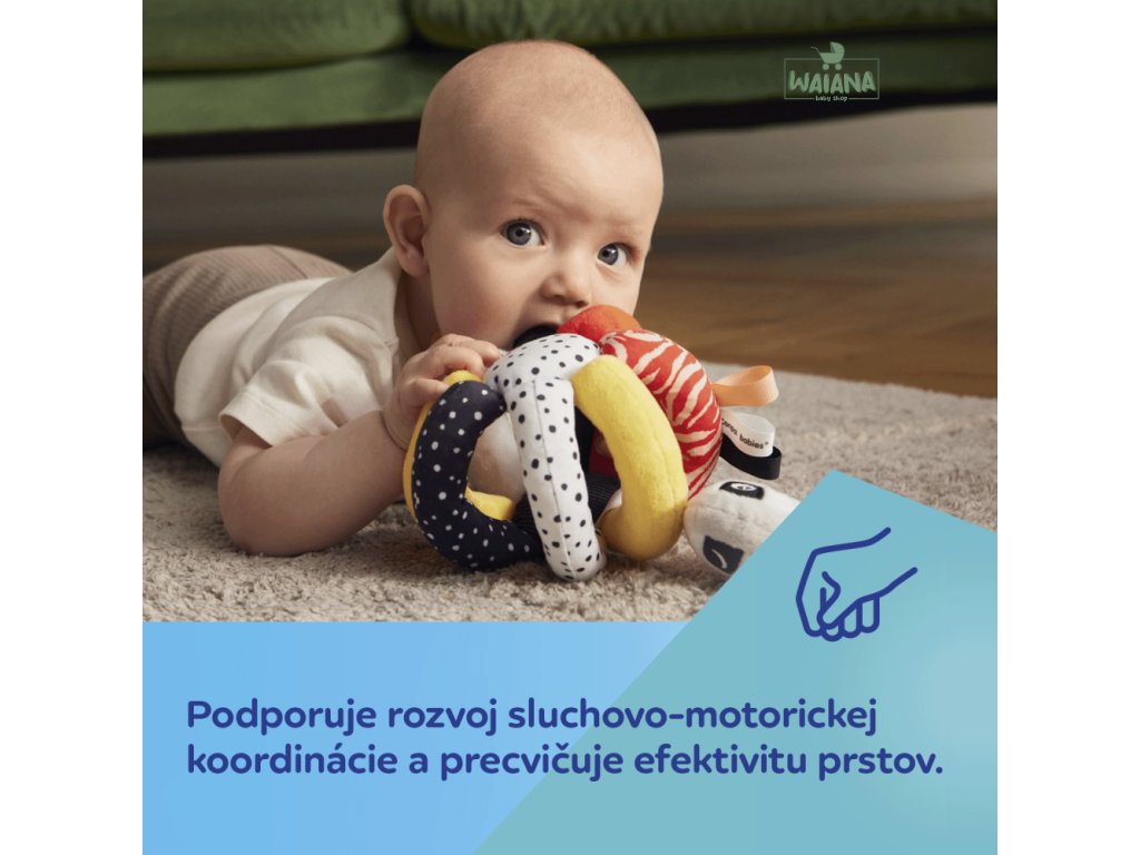 Interaktívne prvky – šušťanie, pískanie, visačky a rôzne textúry materiálu sú pre dieťa zaujímavé pri spoznávaní sveta.
