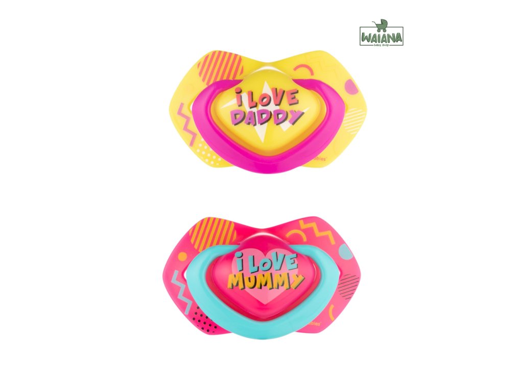 Canpol babies Set symetrických silikonových dudlíků Light touch 6-18m NEON LOVE růžový