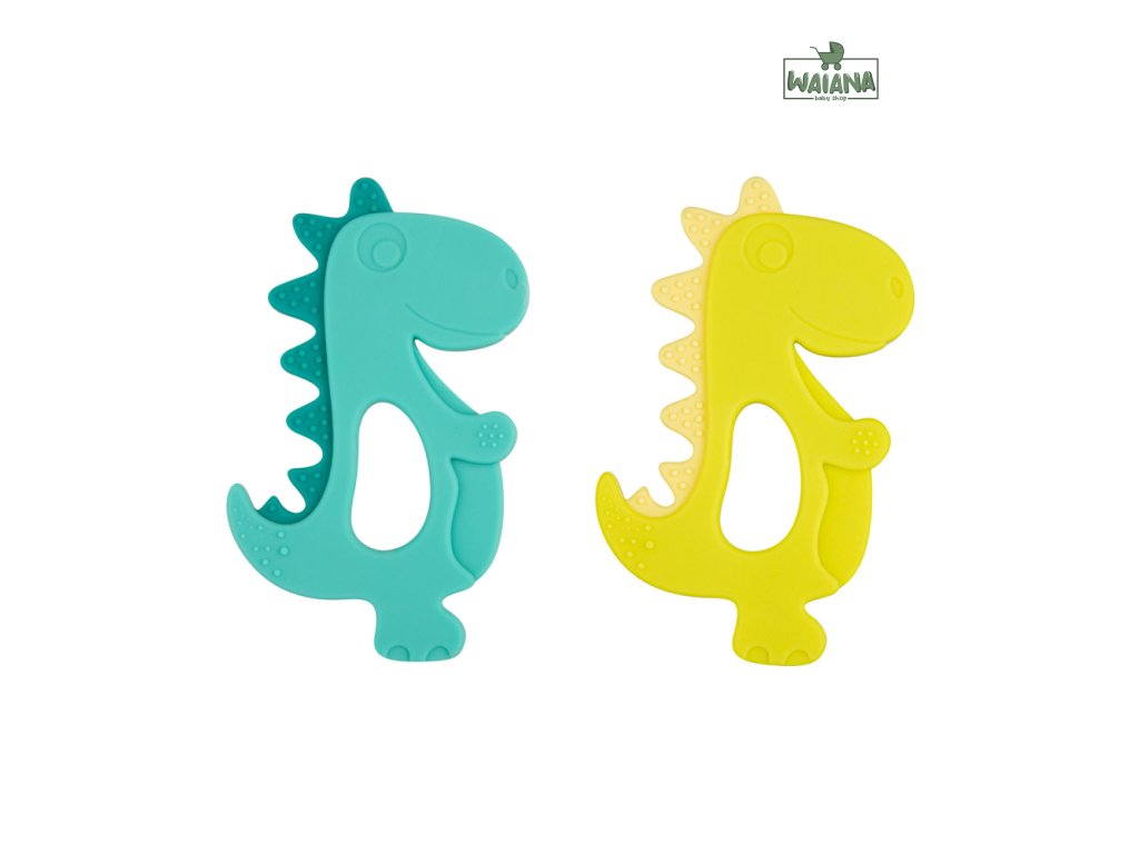 Roztomilá silikónová hryzačka v tvare dinosaura v pastelových trendy farbách je praktickým doplnkom pre najmenšie deti. Pomáha tíšiť bolesť ďasien v období rastu zúbkov. Nerovnomerný povrch pomáha masírovať svrbivé ďasná. Mäkký a pružný, hygienicky nezávadný silikón, zmierňuje bolesť ďasien bez podráždenia. Ľahký a praktický tvar bez ostrých hrán umožňuje deťom pohodlný úchop.