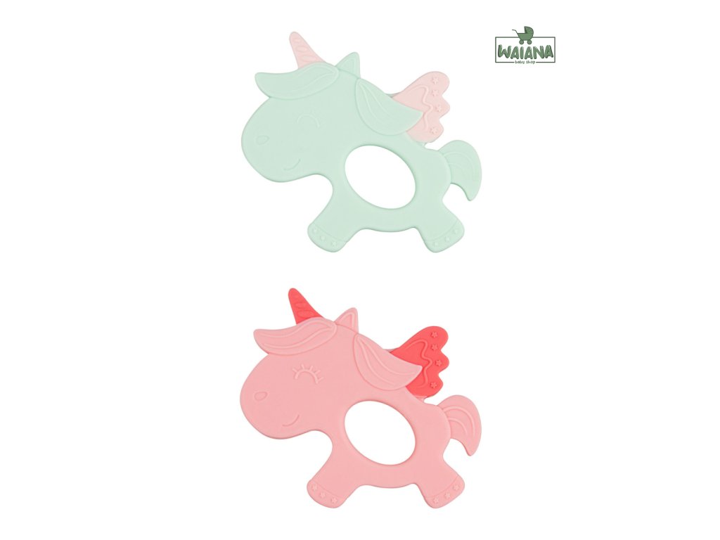 Roztomilá silikónová hryzačka v tvare jednorožca v pastelových trendy farbách je praktickým doplnkom pre najmenšie deti. Pomáha tíšiť bolesť ďasien v období rastu zúbkov. Nerovnomerný povrch pomáha masírovať svrbivé ďasná. Mäkký a pružný, hygienicky nezávadný silikón, zmierňuje bolesť ďasien bez podráždenia. Ľahký a praktický tvar bez ostrých hrán umožňuje deťom pohodlný úchop.