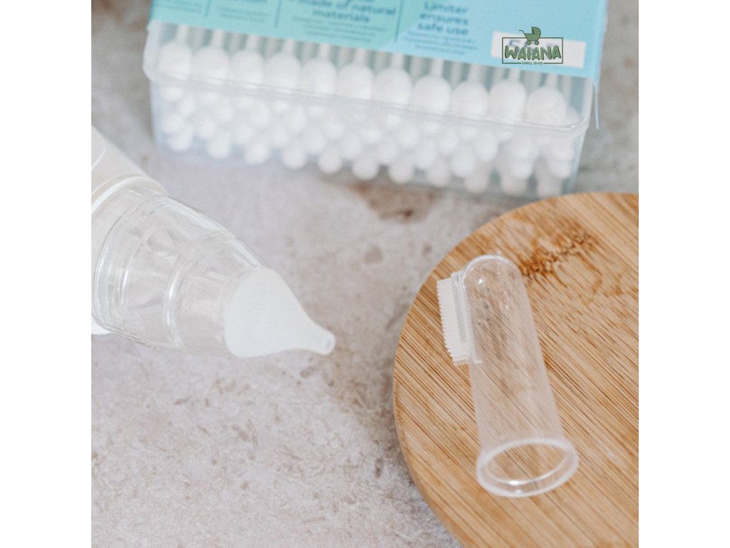 Silikónová kefka je určená na umývanie prvých zúbkov dieťaťa a masáži ďasien. Odporúčame na použitie aj u detí, ktoré ešte zúbky nemajú. Konštrukcia kefky umožňuje vyčistenie a masáž ťažko dostupných miest. Špeciálne výstupky dôkladne masírujú detské ďasná. Učí dieťa správnej zubnej hygiene. Umožňuje rodičom bezpečné čistenie, bez obáv z poškodenia citlivých detských ďasien, ku ktorému môže dôjsť pri použití klasických zubných kefiek a tým dieťa odradí od čistenia zúbkov. Kefku navlečte na ukazovák (viď obrázok) a jemne čistite a masírujte detské ďasná.