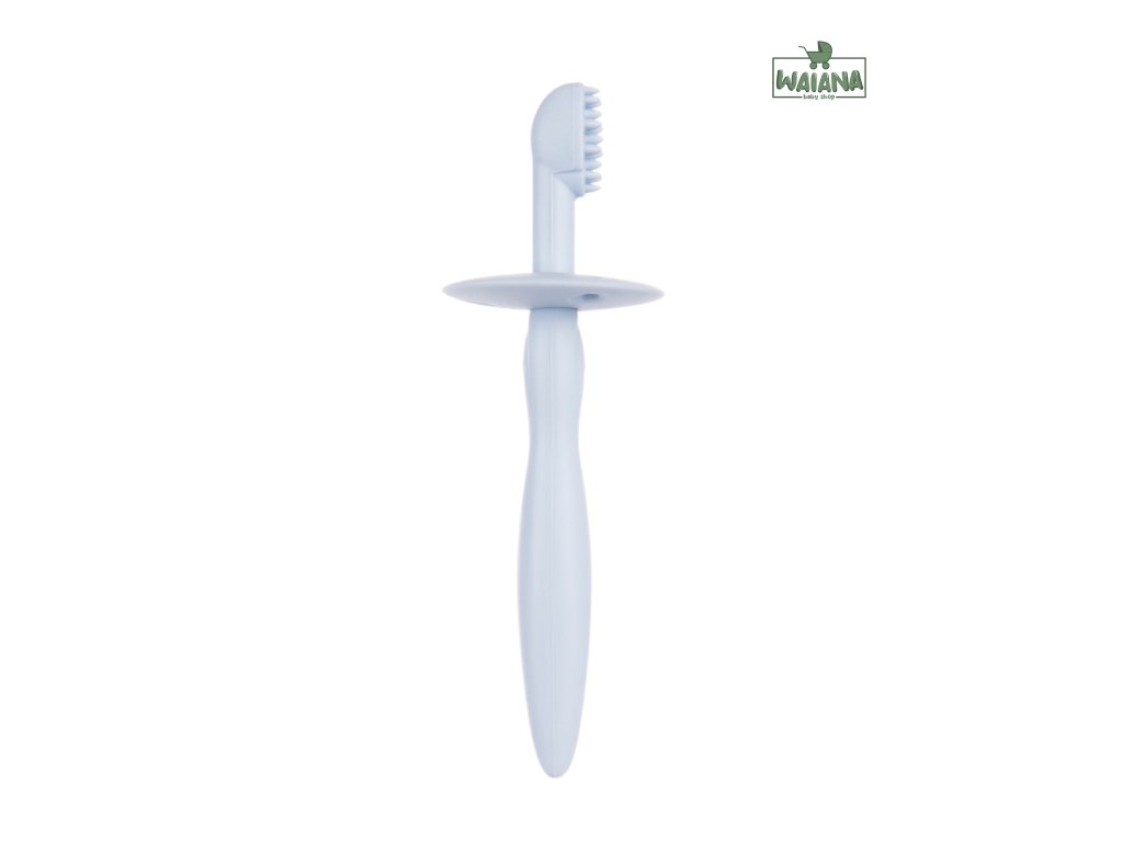 Ideálne na začatie čistenia zubov u najmenších detí. Je z mäkkého a bezpečného silikónu, nedráždi citlivé ďasná dieťaťa a zaručuje dôkladné čistenie prvých zubov. Špeciálny štít zabraňuje zatlačeniu kefky príliš hlboko do úst dieťaťa. U detí, ktoré ešte nemajú zuby, sa zubná kefka môže používať ako hryzačka, na masáž a každodennú hygienu ďasien. Chladenie v chladničke pred použitím prinesie úľavu počas obdobia prerezávania zúbkov.