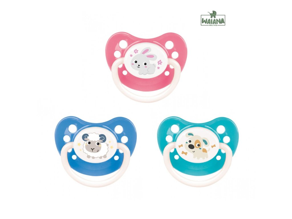 - ventilačné otvory v štítku cumlíka umožňujú cirkuláciu vzduchu, odvod slín a zabraňujú tak podráždeniu pokožky okolo úst;