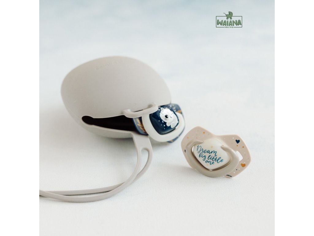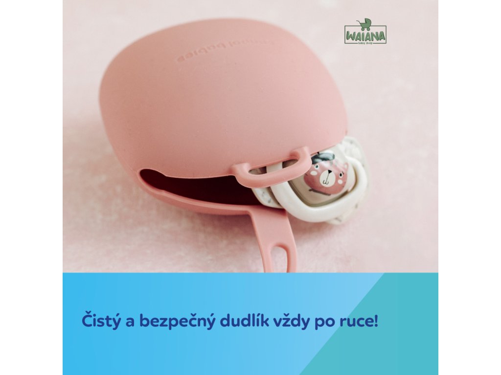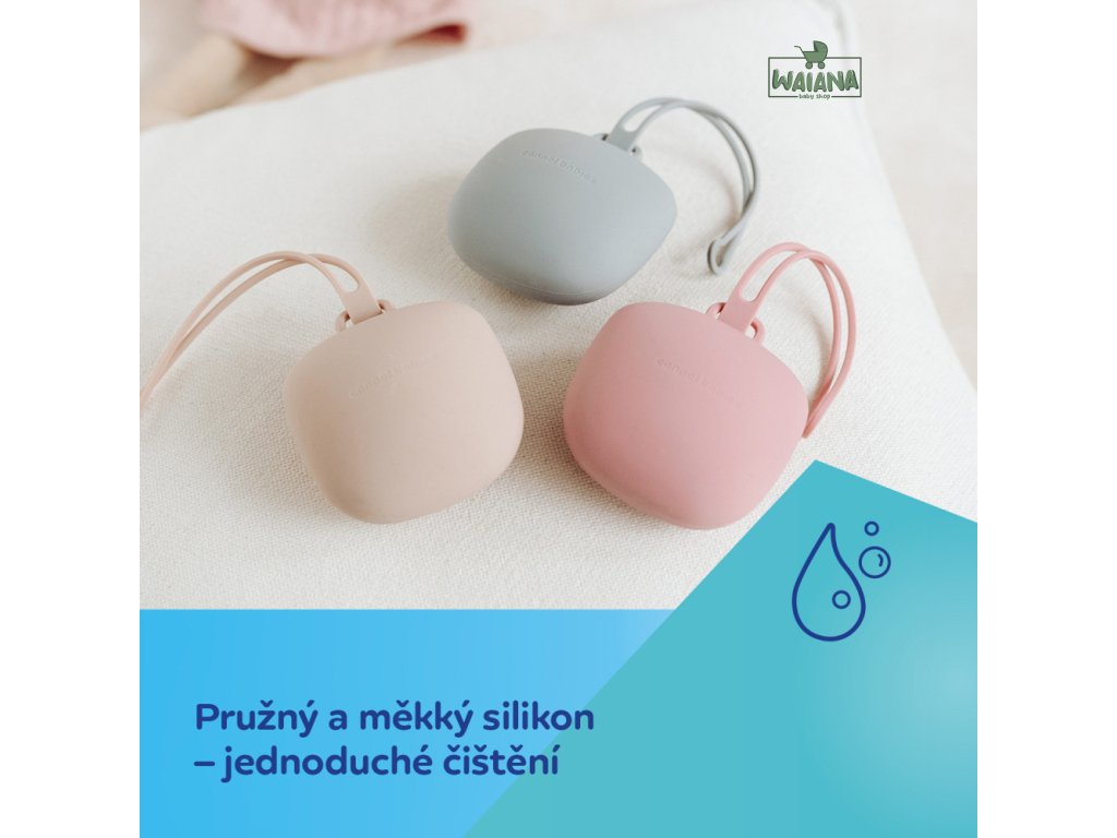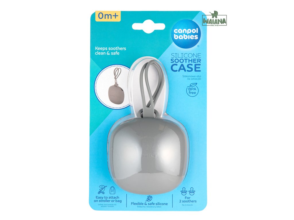 Silikónové puzdro na cumlík ochráni obľúbený cumlík vášho bábätka na prechádzkach, cestovaní aj doma. Krásne a praktické silikónové puzdro na cumlík pojme dva cumlíky štandardnej veľkosti, ktoré budú vždy čisté a pripravené na použitie. Puzdro má kompaktný tvar a pohodlnú praktickú rukoväť, pomocou ktorej ho možno ľahko pripevniť na kočík, postieľku alebo tašku, aby boli cumlíky vždy po ruke. Puzdro na cumlík Canpol babies je vyrobené z pružného a mäkkého silikónu, vďaka ktorému sa pohodlne používa a ľahko sa čistí. Minimalistický dizajn sa hodí do kabelky každej mamičky.