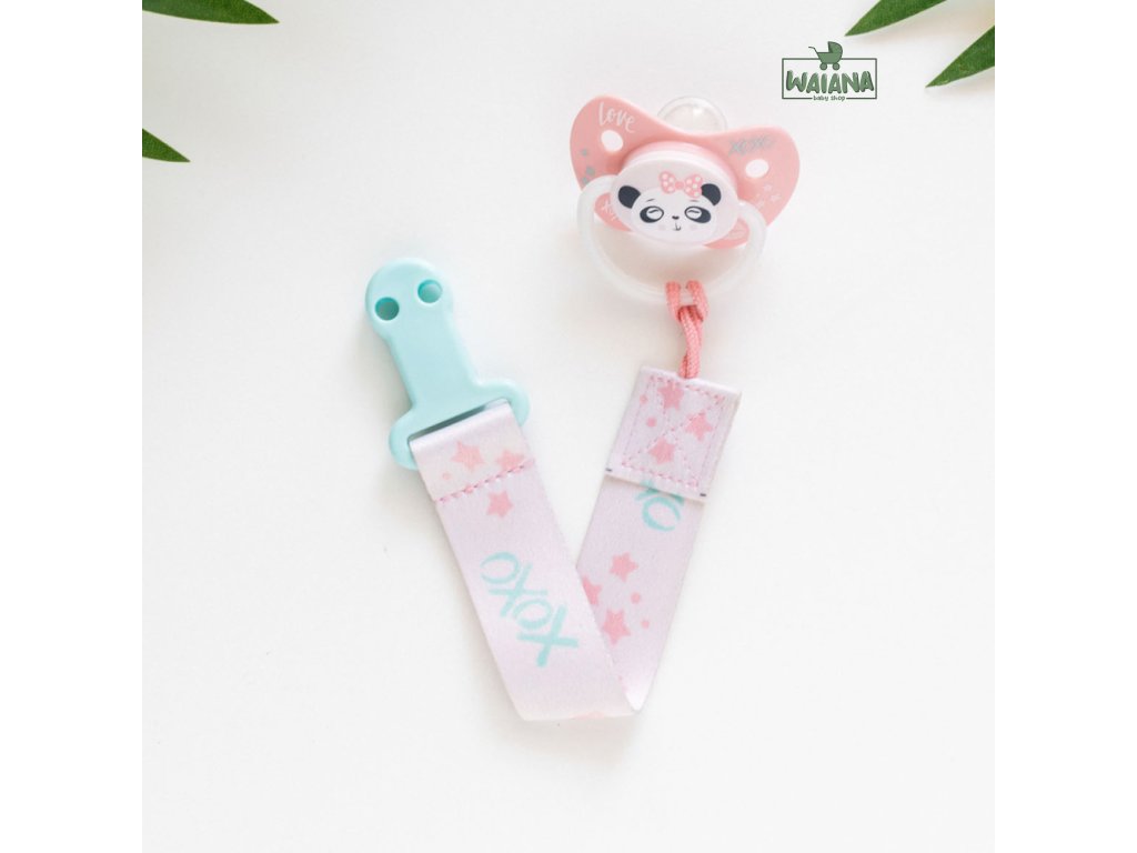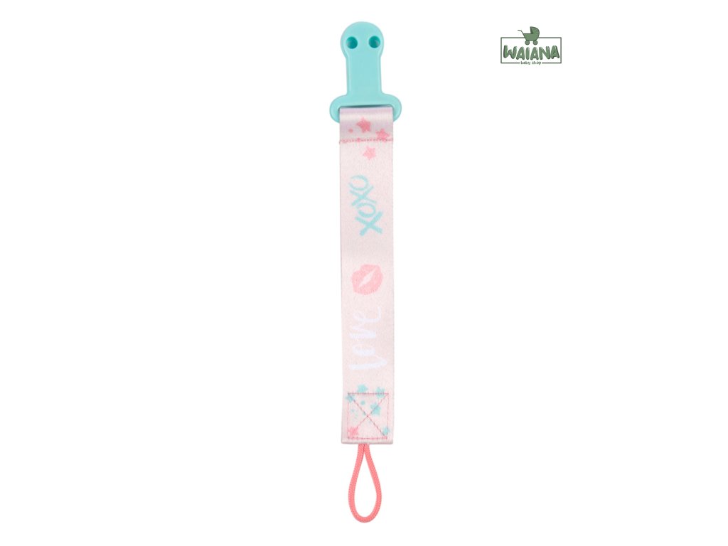 Štýlová novinka z kolekcie EXOTIC ANIMALS je praktickým doplnkom každého dieťatka. Látková stuha s klipom slúži na pevné a stabilné pripevnenie cumlíka k oblečeniu bábätka a chráni tak cumlík pred ušpinením alebo stratou.
