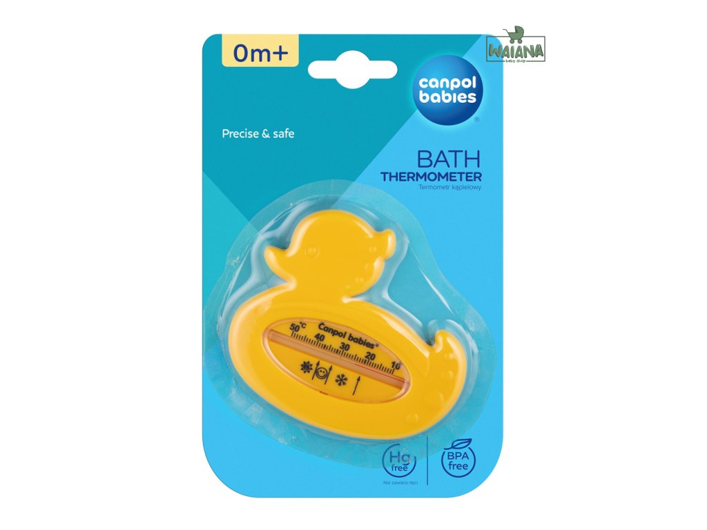 Praktický a bezpečný teplomer do kúpeľa v tvare kačičky umožňuje presne merať teplotu vody. Odčítanie teploty je jednoduché a prehľadné. Výrobok neobsahuje ortuť. Na meranie sa používa purifikovaný petrolej uzavretý v trubičke. K dispozícii vo viacerých farbách.