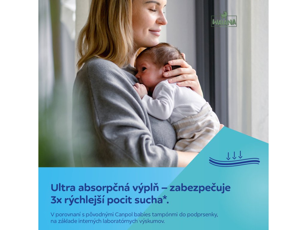 Zaisťujú 3x rýchlejší pocit sucha.*V porovnaní s predchádzajúcimi tampónmi do podprsenky Canpol babies na základe interného laboratórneho výskumu.