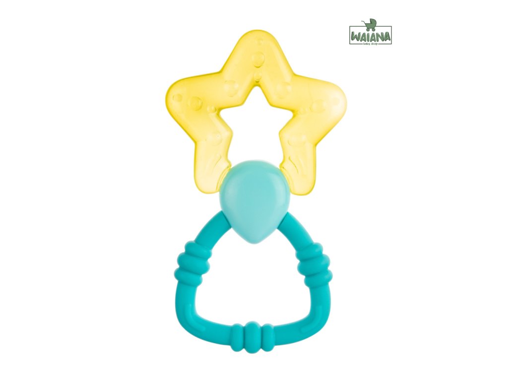 Vodná hryzačka Kúzelná palička spája výhody hrkálky a hryzačky. Má široké držadlo na jednoduché uchopenie malými rukami. Pri trasení hračka vydáva zaujímavý hrkavý zvuk. Obsahuje mäkké žuvacie prvky, ktoré upokojujú dieťa pri prerezávaní zúbkov. Je z odolných a bezpečných materiálov s jemne zaoblenými tvarmi. Ľahko sa udržiava v čistote. Určené pre deti hneď od narodenia.