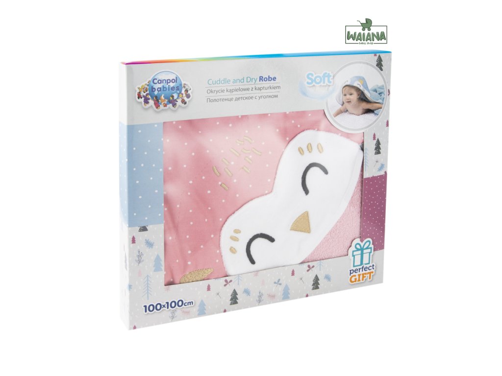 Praktický župan s kapucňou je nenahraditeľný počas večerného kúpeľa. Je zo 100 % bavlny, ktorá dokonale absorbuje zvyškovú vodu, čo umožňuje dlho udržiavať telesné teplo. Je mäkký a jemný, takže nedráždi pokožku. Voľný strih neobmedzuje pohyby dieťaťa. Našitá kapucňa chráni mokrú hlavu pred vychladnutím. Rozmery županu: 100 x 100 cm.