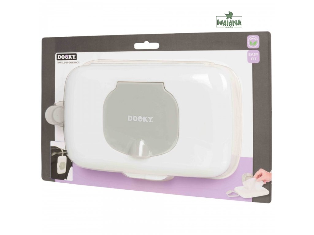 Dooky Travel Dispenser Box je nepostrádateľný spoločník pre rodičov na cestách! Udržuje obrúsky vlhké, pripravené na použitie kedykoľvek počas prechádzky.