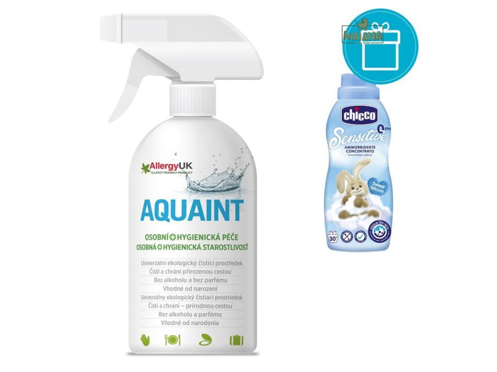 AQUAINT 100% ekologická čistiaca voda 500ml + CHICCO Aviváž Chicco koncentrovaná Sladký Púder, 750ml