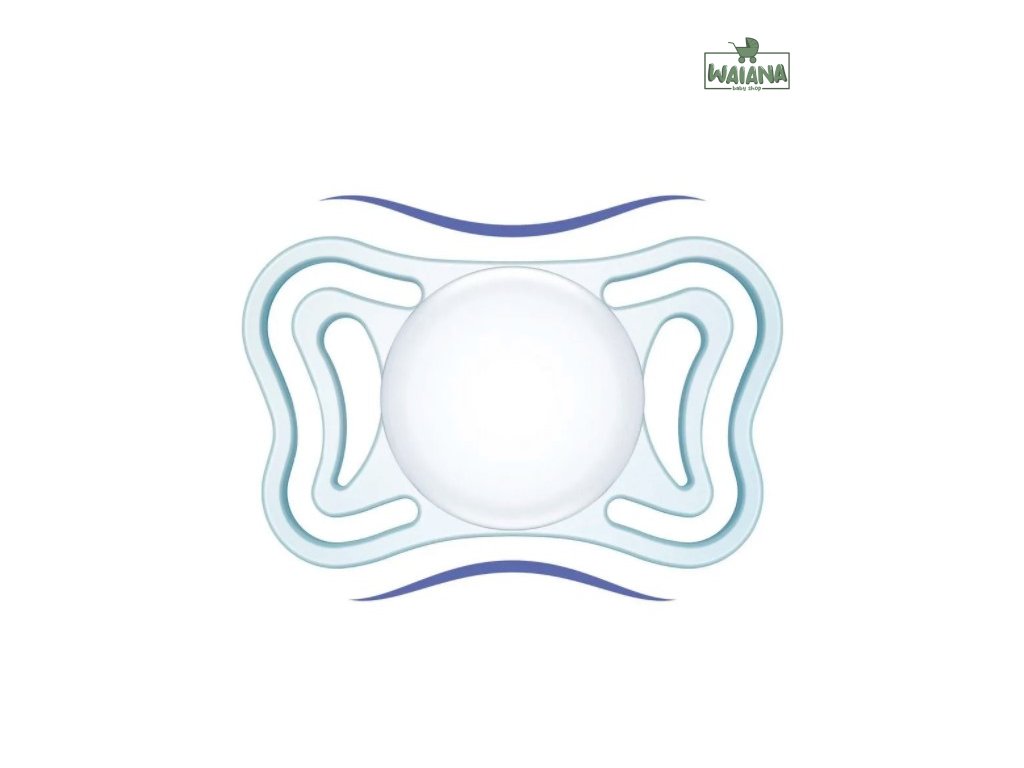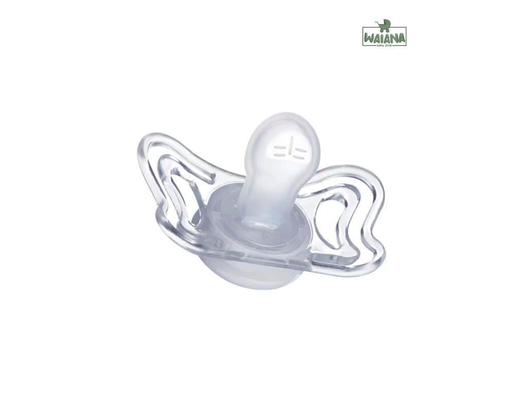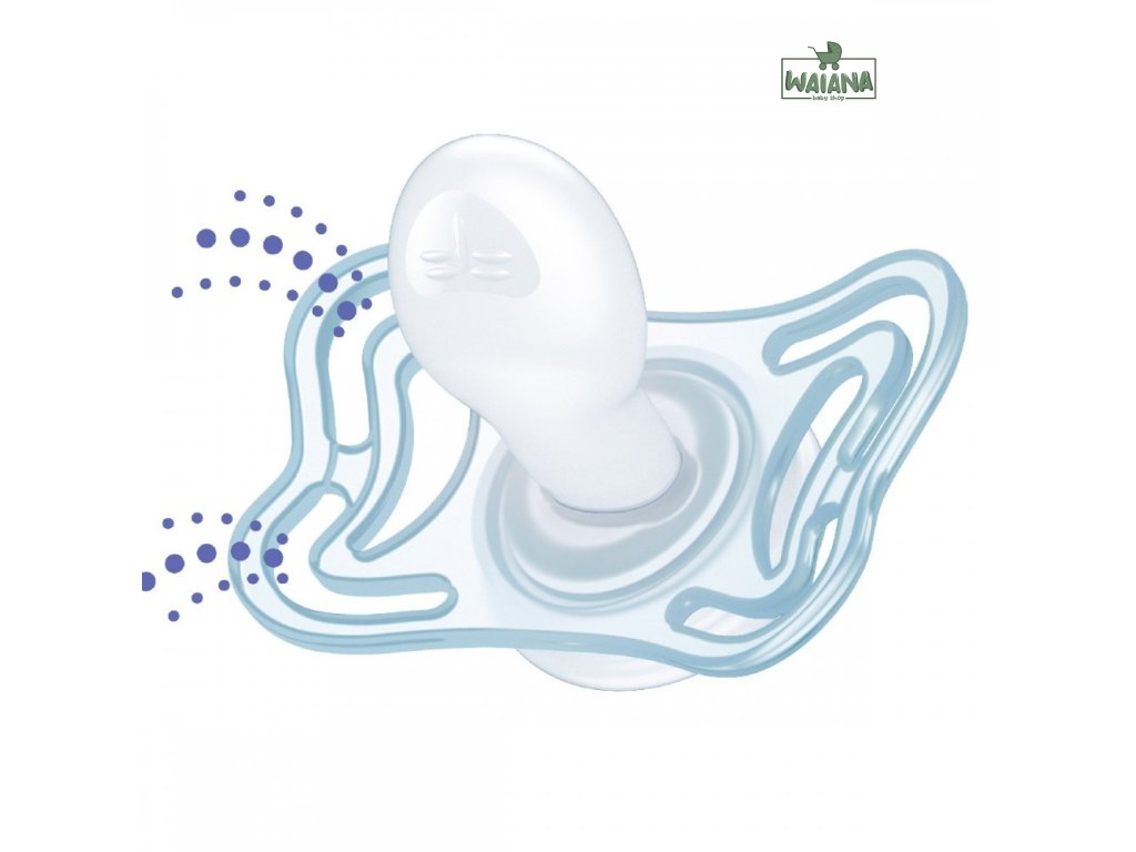 - extrémne mäkká zúžená pätička cumlíka umožňuje dieťaťu zavrieť ústa a redukuje riziko nerovnomerných zubných oblúkov (je ortodonticky korektná)