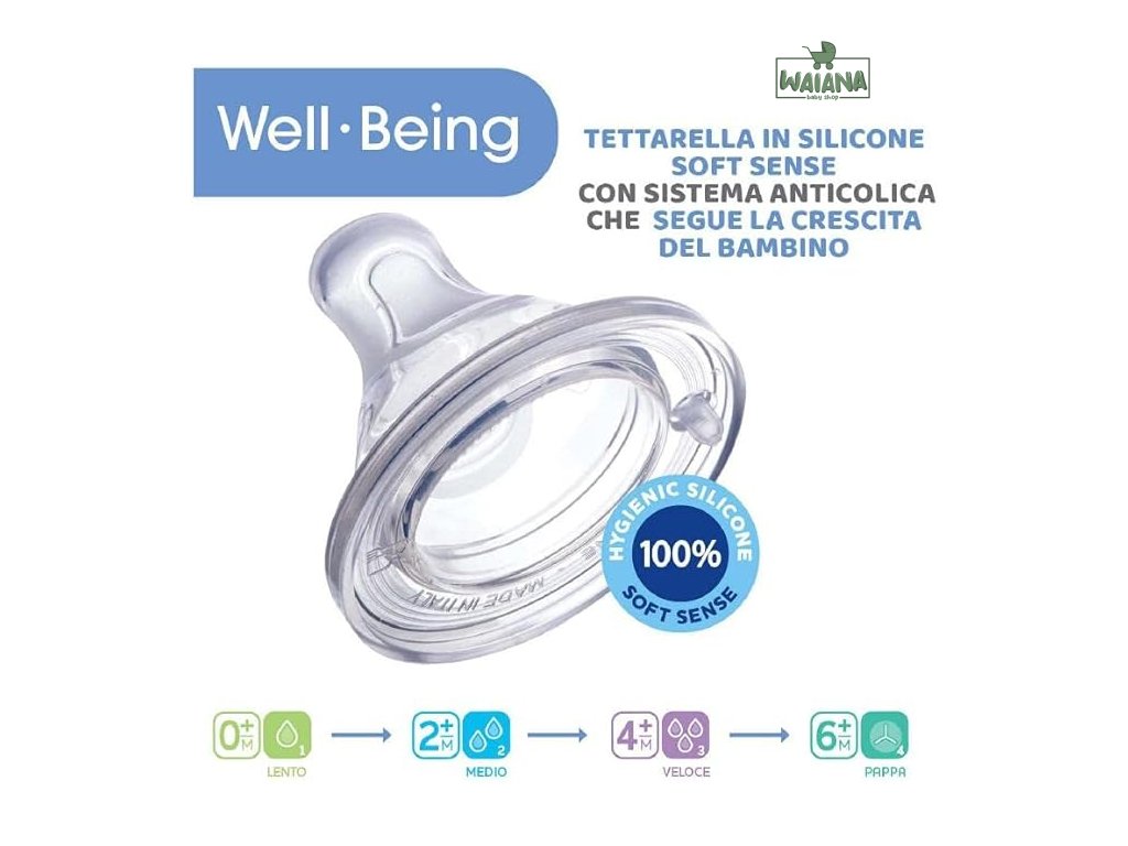 Dojčenské fľaše Chicco Well-being ponúkajú tú správnu fľašu pre každodennú potrebu dieťatka, aby pomohli mamičke a dieťatku vychutnať si pokojný zážitok z kŕmenia.