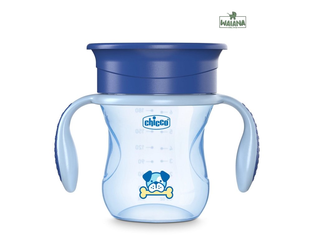 CHICCO Hrnček Perfect 360 s držadlami 200 ml modrý 12m+