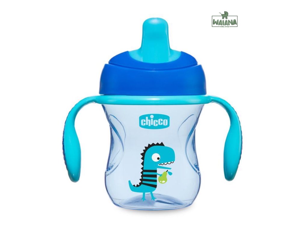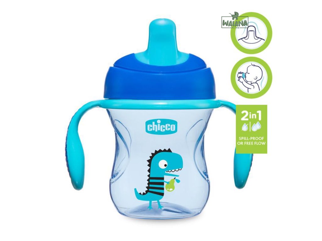 Hrnček Chicco Trénujeme je ideálny na prechod od fľaše k prvému hrnčeku a samostatnému pitiu.