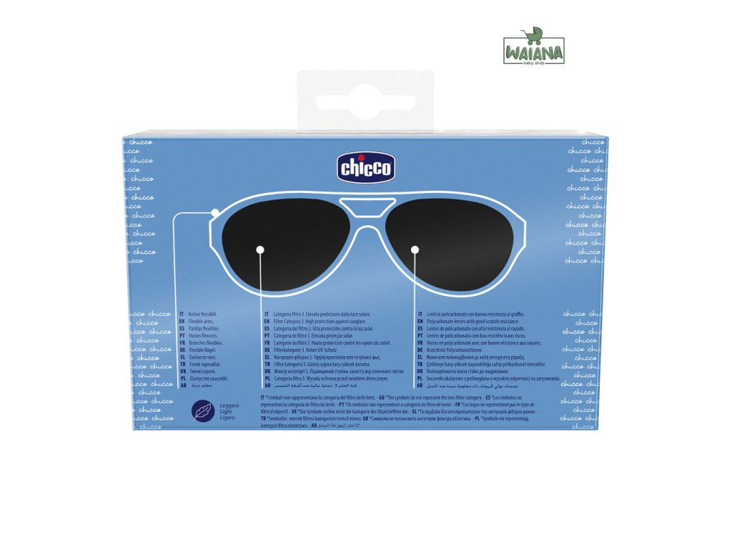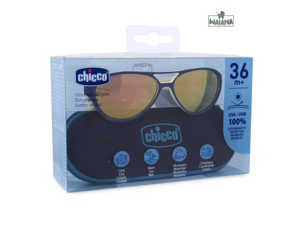 CHICCO Okuliare slnečné modré kol. 2025 - zrkadlové sklá, 36m+