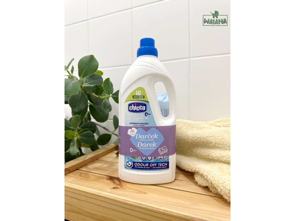 CHICCO Prostředek prací dětský Sensitive 1,5 l (27 praní) + vlhčené ubrousky 72 ks zdarma