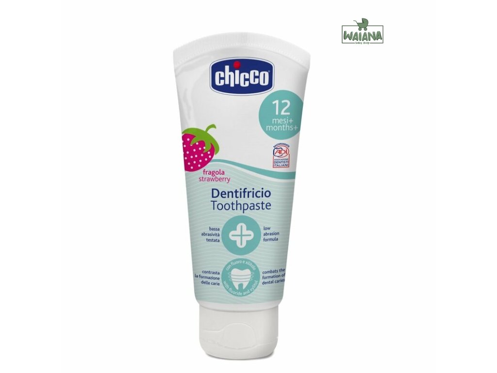 - Zubná pasta s fluórom, vyvinutá špeciálne pre deti. Obsahuje bio-vápnik, čo je biologicky dostupný vápnik, ktorý je minerálom a posilňuje zúbky v konečnej fáze ich rastu.