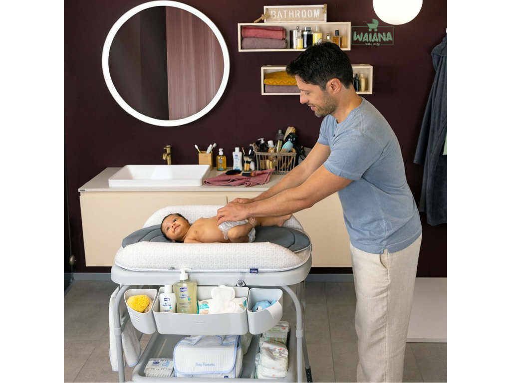 CHICCO Stolík prebaľovací s vaničkou Cuddle & Bubble - Graphite Melange 0m+, do 11kg