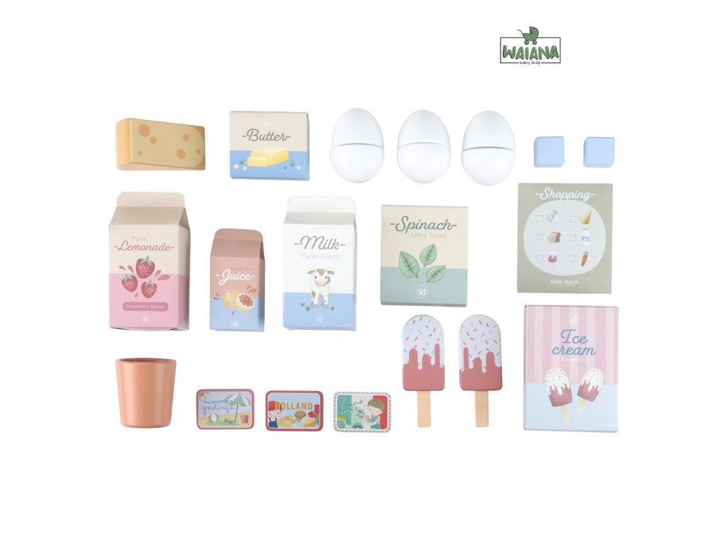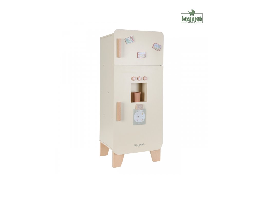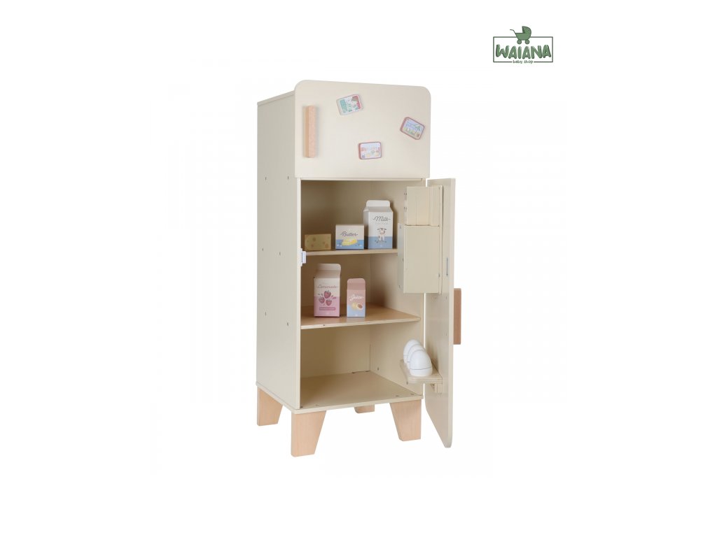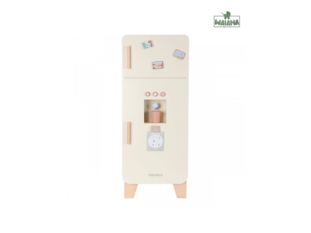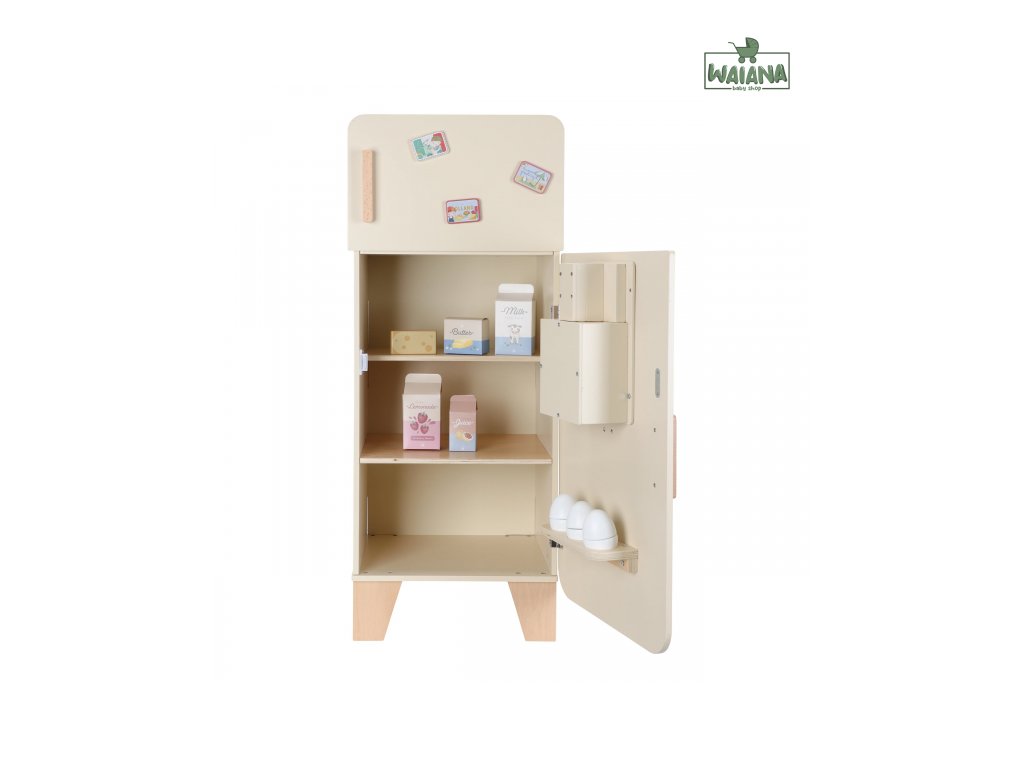 Krásna drevená chladnička Little Dutch s mrazničkou a výrobníkom ľadu bude skvelým doplnkom detskej hernej kuchyne, obchodu aj reštaurácie. Chladnička ponúka dostatok priestoru na uloženie potravín a obsahuje aj špeciálnu priehradku na vajíčka. Vďaka praktickému rozvrhnutiu vnútorného priestoru a pohyblivým prvkom sa deti zábavnou formou učia o skladovaní potravín a fungovaní domácnosti.
