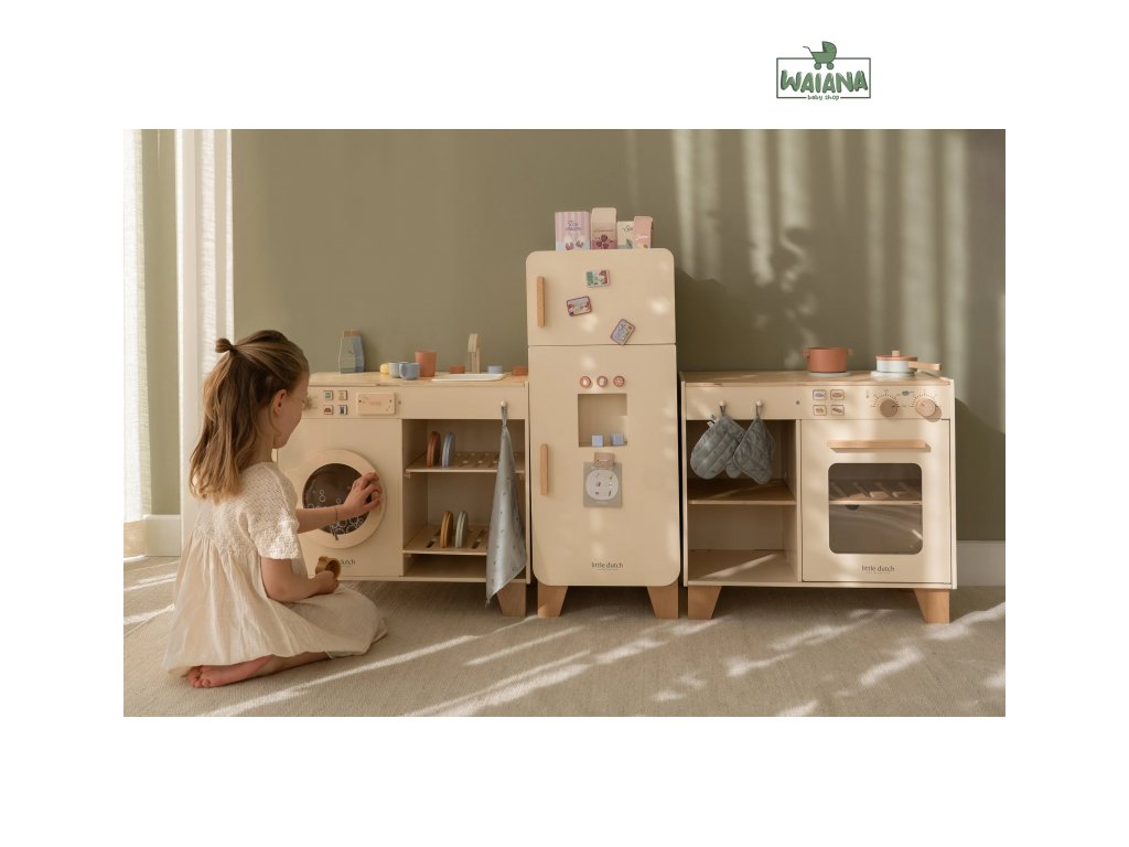Chladnička je skvelým doplnkom k detskej kuchynke a práčke z kolekcie drevených hračiek Little Dutch. Môžete tak vytvoriť plne vybavenú hernú kuchyňu, ktorú je možné ďalej vybaviť ďalšími drevenými hračkami Little Dutch, napr. kávovarom, sendvičovačom, kuchynskou váhou, krájacím ovocím, krájacou zeleninou, čajovým servisom a pod.