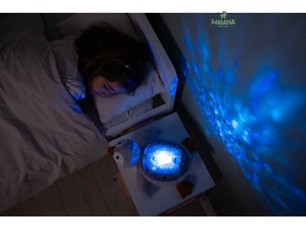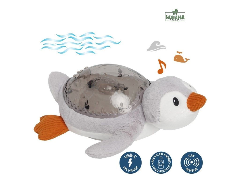 Cloud b® Tranquil Penguin™ predstavuje kombináciu nočného svetla, projektora a upokojujúcej hudby, čím vytvára magickú atmosféru pre pokojný spánok.