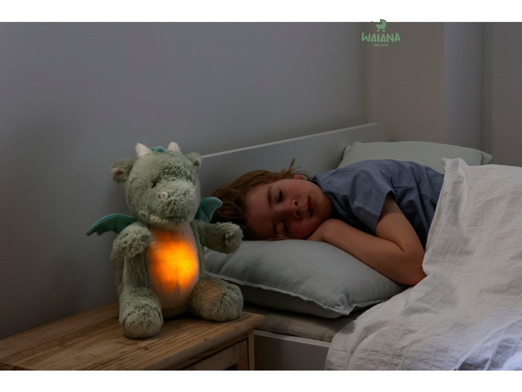 Roztomilé nočné svetielko s melódiou s motívom draka pomáha deťom prekonať strach z tmy tým najmilším možným spôsobom!