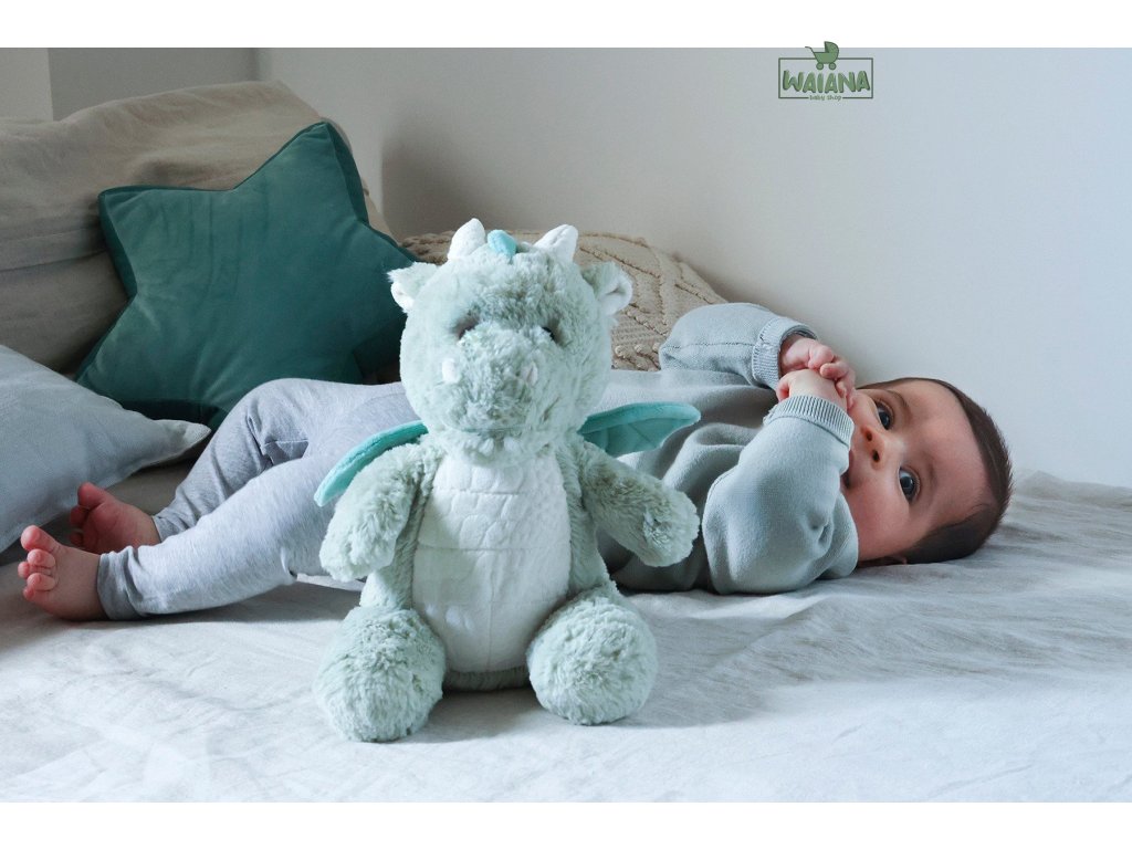 Prítulný priateľ pre bábätko.Love Light ™ Buddies sú mimoriadne prítulní priatelia, ktorí premenia strašidelnú tmavú miestnosť na útulné a bezpečné miesto s pokojnou atmosférou, vďaka ktorej bude dieťatko ľahšie zaspávať.Dokonalý spoločník na noc.Sú to dokonalí spoločníci na noc vďaka skrytému zvukovému panelu, ktorý hrá osem upokojujúcich zvukov a melódií, ktoré vaše dieťatko uvedú do pokojného a relaxačného spánku.Funkcia nahrávania.Doplnková funkcia nahrávania umožňuje matke uložiť si úryvok piesne, ktorú spieva, alebo upokojujúce slová adresované priamo bábätku, ktoré možno prehrať počas spánku.Cez deň zábava v noci ochranca.Zábavný, plyšový kamarát cez deň a upokojujúce svetlo v noci. Love Light ™ Buddies bude jedným z najlepších priateľov vášho dieťaťa, keď sa bude hrať, pred spaním, kedykoľvek a kdekoľvek!Vlastnosti.-zmierňuje strach z tmy-8 upokojujúcich zvukov a melódií: tlkot srdca, dážď, jemné zvuky, potok, Bachova uspávanka, Dolpfin Dreams, klasická uspávanka, rozprávkový tanec-2 svetelné efekty a 5 farebných variantov-môžete nahrať svoj hlas!-hrací panel sa dá vytiahnuť-možno prať v práčke a sušiť po odstránení hracieho panelu-automatické vypnutie po 30 minútach-nabíjateľná batériaFunguje to ako uspávanka.Rozkošný Drak má 4 zvuky, ktoré upokojujú a pomáhajú utíšiť bábätká, keď je čas ísť spať, vrátane tlkotu srdca, ktorý napodobňuje upokojujúce zvuky, ktoré bábätko pozná z maminho bruška. Hracia skrinka pre dieťa hrá aj štyri uspávanky, ktoré oslovia rodičov aj dieťa.Nastavenie zvuku pre batoľatá.Keďže sluch batoliat je citlivejší ako sluch dospelých, všetky produkty Cloud b sú udržiavané na odporúčanej hladine zvuku pre batoľatá.Jednoduché použitie.S 8 upokojujúcimi zvukmi a melódiami, z ktorých si môžete vybrať, bude vaše dieťa prenesené do ríše snov jediným stlačením tlačidla! Drak má aj suchý zips, vďaka ktorému najnovšieho parťáka bábätka jednoducho pripevníte na každú postieľku. A keď sa srnček potrebuje okúpať, odstráňte reproduktor a hoďte maskota do bielizne.Je to úžasný darček.Rodičia, ktorí dostanú tento darček pre ich bábätko, vám budú nesmierne vďační! Upokojujúce zvuky vyžarujúce svetlo v super roztomilom drakovom plyši sú tým najlepším spôsobom, ako pomôcť vášmu bábätku zaspať. Drak sa stane aj obľúbeným spoločníkom dieťaťa.Technické údaje.vek: 0+rozmery balenia (1 ks): D 23cm x Š 17cm x V 24cmrozmery (cm): šírka 18 x výška 30 x dĺžka / hĺbka 31hmotnosť produktu po rozbalení: 0,57 kghmotnosť s obalom: 0,72 kg