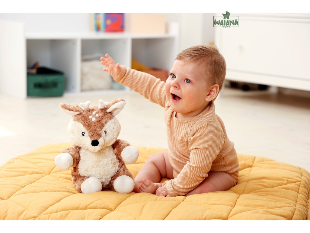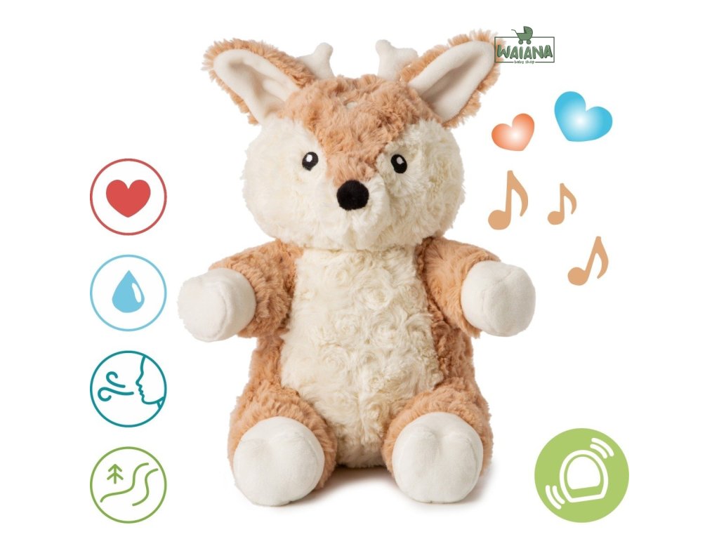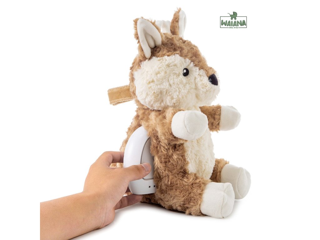 S 8 upokojujúcimi zvukmi a melódiami, z ktorých si môžete vybrať, bude vaše dieťa prenesené do ríše snov jediným stlačením tlačidla! Srnček má aj suchý zips, vďaka ktorému najnovšieho parťáka bábätka jednoducho pripevníte na každú postieľku. A keď sa srnček potrebuje okúpať, odstráňte reproduktor a hoďte maskota do bielizne.