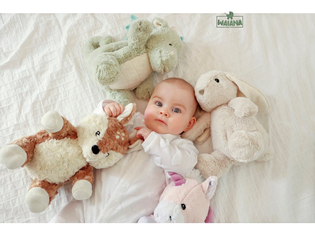 Sú to dokonalí spoločníci na noc vďaka skrytému zvukovému panelu, ktorý hrá osem upokojujúcich zvukov a melódií, ktoré vaše dieťatko uvedú do pokojného a relaxačného spánku.