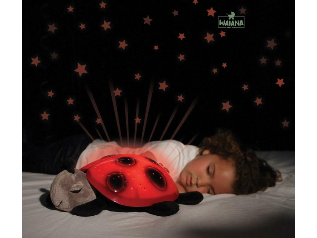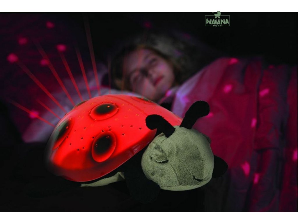Rozkošná - Lienky, katarinky, chrobáky – akokoľvek ich nazvete, sú šialene roztomilé! A Twilight Ladybug je rovnako praktická ako pekná. Jednoducho položte svetielko Lienku na podlahu do stredu miestnosti a zhasnite svetlá, aby ste dosiahli absolútne uchvacujúci efekt spánku pod hviezdami. Víťazka niekoľkých ocenení, vrátane ceny Creative Child Magazine 2008 Creative Child Product of the Year Award, Twilight Ladybug premieta na strop a steny sedem hlavných súhvezdí vrátane Veľkého voza a Pegasa. Poučná - Urobte si spánok ešte lepším s pomocou krásne ilustrovaného sprievodcu hviezdami, ktorý vás a vaše dieťa naučí veľa o nočnej oblohe. Nočné svetielko Lienka obsahuje aj očarujúci príbeh o tom, ako Twilight Ladybug, odlúčená od svojej rodiny, používa súhvezdia, aby našla cestu domov.Upokojujúca - Tri ukľudňujúce výbery farieb umožňujú vášmu dieťaťu nielen naučiť sa rozlišovať rôzne farby, ale tiež ich skutočne zažiť. Rubínovo červená ponúka bohatý, hrejivý pocit; Zafírová modrá je upokojujúca; Smaragdovo zelená vzbudzuje pocity harmónie a obnovy. Krovky Twilight Ladybug tiež vrhajú teplú žiaru, vďaka ktorej je tma menej skľučujúca.