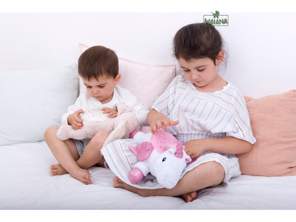 Pomáha prekonať strach z tmy.Roztomilá lampa s motívom zajačika pomáha deťom prekonať strach z tmy tým najsladším možným spôsobom! Twilight Buddies ™ sú mimoriadne prítulní priatelia, ktorí zmenia strašidelnú a temnú miestnosť na oblohu hviezdami nabitú skutočnými súhvezdiami na strope a stenách spálne. V upokojujúcej hviezdnej projekcii je ukrytý mesiac a tri súhvezdia! Cez deň zábavný plyšák, v noci strážca spánku.Cez deň zábavný, prítulný kamarát a v noci upokojujúce svetlo. Twilight Buddies budú jedným z najlepších priateľov vášho dieťaťa.Vlastnosti produktu.-zmierňuje strach z tmy -zobrazuje skutočné súhvezdia hviezd -automatické vypnutie po 45 minútach, keď dieťa hlboko spí, podľa odporúčania pediatrov -zobrazené farby: oceánska modrá, smaragdovo zelená a jantárová-možnosť automatického prechodu všetkými tromi farbami -LED svetlá s dlhou životnosťou -3 x AA batérie, sú súčasťou balenia Očarujúce, poučné a upokojujúce.Osvetlenie izbičky pred spánkom prostredníctvom Twilight Buddies, majú rovnaký upokojujúci účinok ako naša ocenená Twilight Turtle. Vyberte svojmu dieťaťu jeho obľúbenú hračku a ono bude netrpezlivo čakať na spánok skôr ako sa nazdáte! Postavte túto malú plyšovú hračku na zem v strede miestnosti a vypnite svetlá, aby ste dosiahli plný, nebeský efekt spánku pod hviezdami. Výber z troch farieb.Výber z troch upokojujúcich farieb vytvára jedinečnú atmosféru, navodzuje príjemnú a pozitívnu náladu a umožňuje dieťaťu rozpoznávať farby. Jantárová farba vyžaruje teplo a pokoj, smaragdovo zelená vytvára radostnú a relaxačnú atmosféru a oceánska modrá pomáha upokojiť zmysly. Plyš Twilight Buddies tiež vyžaruje teplým svetlom, vďaka ktorému je tma menej skľučujúca.Jednoduché použitie. Mäkký plyš s odolnou plastovou škrupinou. Stačí stlačením tlačidla na škrupine zapnúť súhvezdia a užívať si ich efekt celých 45 minút - dosť na to, aby väčšina detí zaspala. Po uplynutí tejto doby sa lampa automaticky vypne, čím sa predĺži životnosť batérie a umožní sa dieťaťu hlboko zaspať, v súlade s odporúčaniami pediatrov. Darček pre deti aj dospelých.Skvelý tip na darček pre deti, ktoré sa boja tmy, ako aj pre dospelých, ktorí majú problém zaspať. Snáď najlepšia vec na tejto mimoriadnej hračke je, že sa stane plyšovým priateľom, ktorý sprevádza vaše dieťa pri spaní mnoho rokov!Technické údaje.-vek: 0+-rozmery (cm): šírka 30 x výška 20 x dĺžka / hĺbka 10