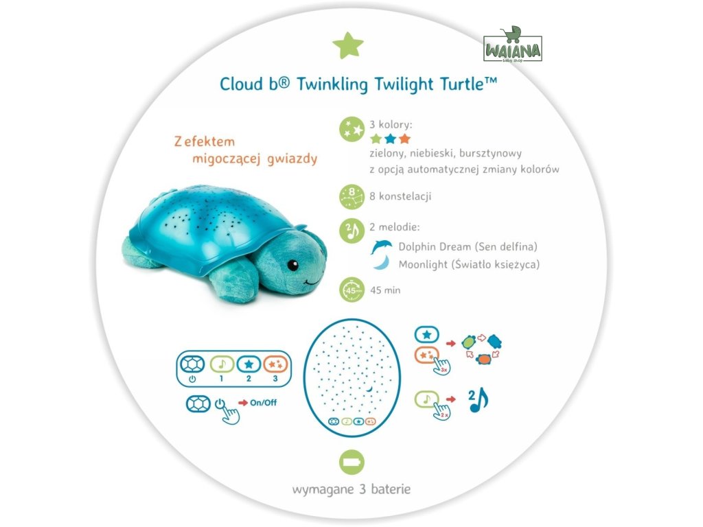 Cloud b® Twilight Turtle™ nielenže ponúka zábavu a pokoj na zaspávanie, ale má aj vzdelávací prvok, ktorý učí deti o zvieratách, najmä morských tvoroch a ohrozených druhoch. Prostredníctvom príbehov o súhvezdiach, ako sú Veľká medvedica, Delfín a Veľryba, sa deti môžu zoznámiť s významom ochrany životného prostredia.