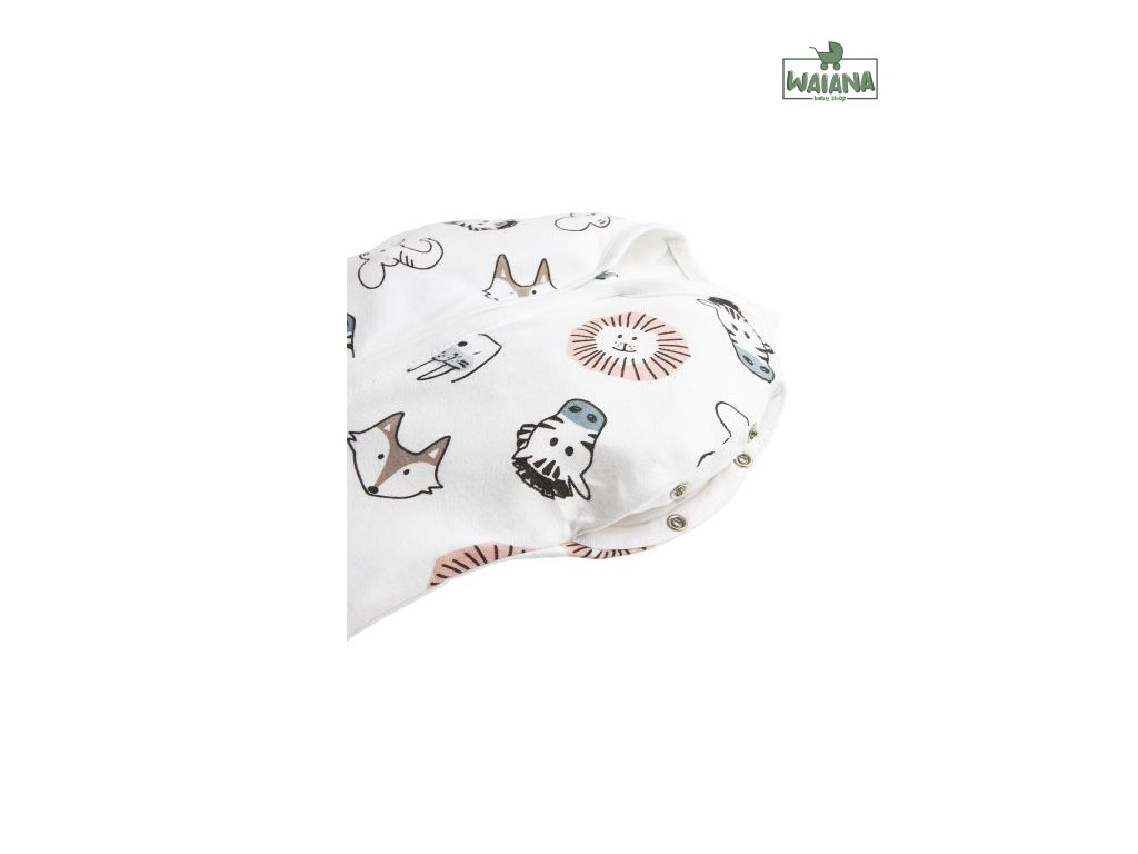 COCOON je unikátní produkt, který kombinuje vlastnosti spacího pytle a zavinovačky. Vytvoříte pocit bezpečí pro své miminko bez nutnosti úplného zavinování.Díky patentním knoflíkům na pažích lze COCOON snadno přeměnit na pohodlný spací vak.