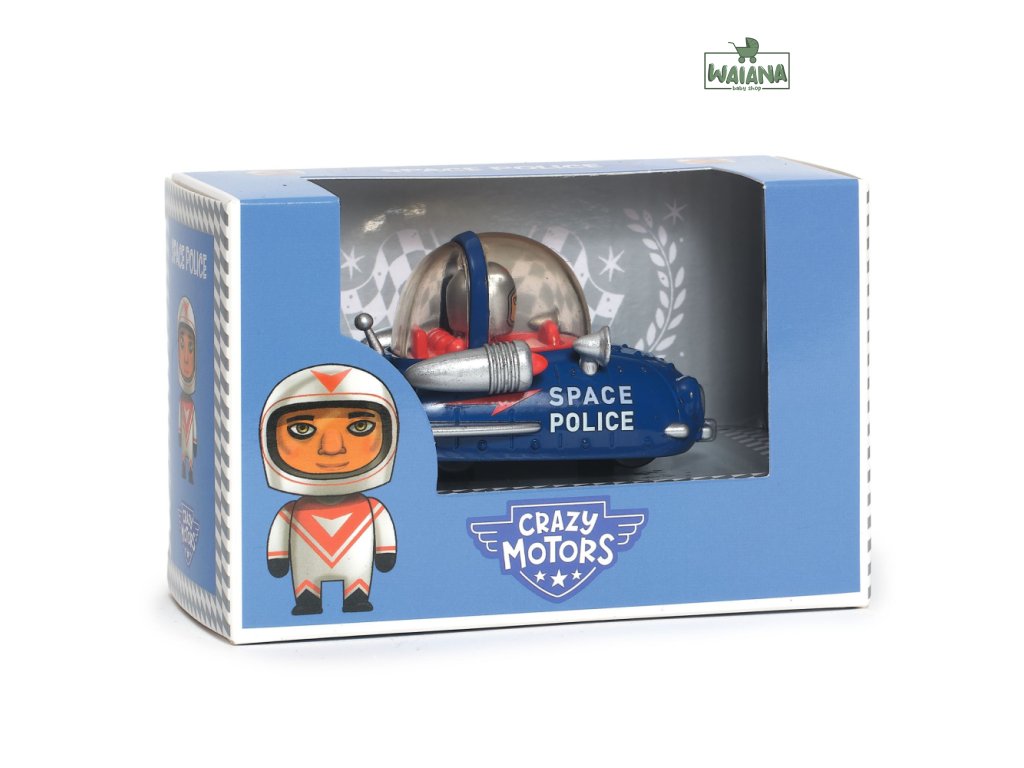 Crazy Motors autíčka: Vesmírna polícia (Space Police)Originálne kovové autíčko z galaktickej policajnej jednotkyVesmírna polícia (Space Police) zo série Crazy Motors od značky Djeco je štýlové kovové autíčko s futuristickým dizajnom, ktoré prenesie deti do sveta vesmírnych misií a napínavých naháňačiek. Policajné vozidlo je pripravené chrániť poriadok v celej galaxii – rýchle, odolné a vždy v akcii. Autíčko má kovové telo, voľne sa otáčajúce kolieska a výrazné farebné detaily typické pre kolekciu Crazy Motors. Vďaka kompaktným rozmerom je ideálne na samostatnú hru, zbieranie aj kombinovanie s ďalšími vozidlami a hernými doplnkami z tejto série.Prečo si vybrať Crazy Motors – Space Policeoriginálny vesmírny policajný dizajnkvalitné kovové spracovaniehladký chod koliesoksúčasť zberateľskej série Crazy Motorsideálne pre deti od 3 rokovObsah baleniakovové autíčko Crazy Motors – Space Police