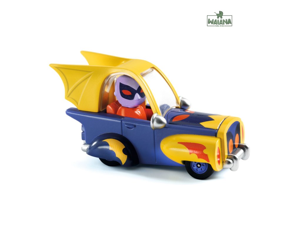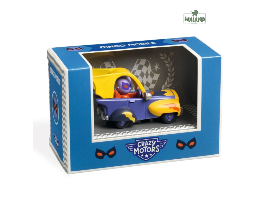 Crazy Motors - Dingo Mobile Mestské autíčko s figúrkou Dingomobil je neúnavný vetroplach, pozná každé zákutie a vie, odkiaľ fúka vietor! Jeho poznávací znak sú žlté krídla. Figúrka sa nedá vybrať z auta, dá sa jej otáčať hlavou, aby mala ostatných pod dohľadom. Konštrukcia auta je kovová, odolná proti nárazom. S pôsobivými aj bláznivými líniami karosérie sa prelínajú nápadné detaily z plastu. Šialený dizajn dotvára metalíza. Podvozok má mäkké perovanie na hladkú jazdu a hojdavý efekt a gumené pneumatiky na úžasné manévre.Crazy Motors - Uletené autíčka je kolekcia s plnými obrátkami pre všetkých milovníkov originálnych autíčok a pretekov. Obsahuje pretekárske delá aj mestské vozidlá a doplnky, ktoré vám umožnia úplne sa ponoriť do tejto nenormálnej kolekcie. Vznikla z myšlienky vytvoriť pretekárov a vodičov a následne jedinečné autá, ktoré sú výrazom ich výstrednej osobnosti. Tieto zberateľské kúsky zaručene potešia! Balené v lepenkovej škatuľke s okienkom z priehľadnej fólie.Obsah: 1 autíčko + 1 figúrka (prilepená).Rozmery: 7,5 x 4,4 x 3,6 cm.