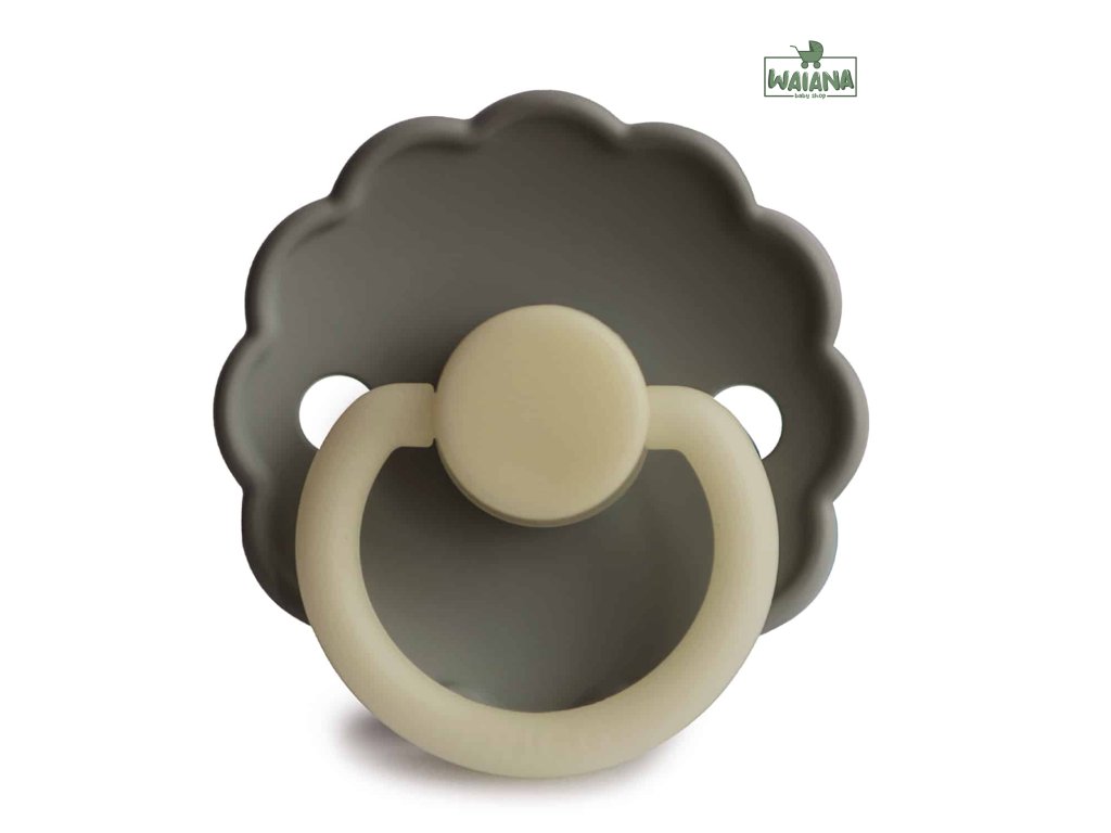 Silikónový cumlík, vhodný pre deti od 6 mesiacov, svietiaci v tme, so vzorom kvietka.