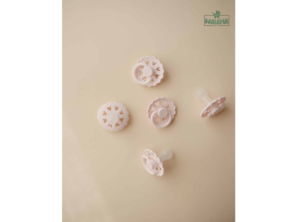 Kolekcia cumlíkov FRIGG Fairytale je inšpirovaná umeleckou tvorbou dánskeho autora H.C. Andersena. Vrúbkované okraje a malé srdiečka vo vnútri štítu napodobňujú jeden z jeho papierových výstrižkov. Každá farba cumlíka je pomenovaná podľa jeho známych rozprávok, ktoré dodávajú cumlíkom nádych fantázie. Tento mimoriadne krásny cumlík, s moderným dizajnom a elegantnými detailmi, upúta pozornosť každej štýlovej mamičky.