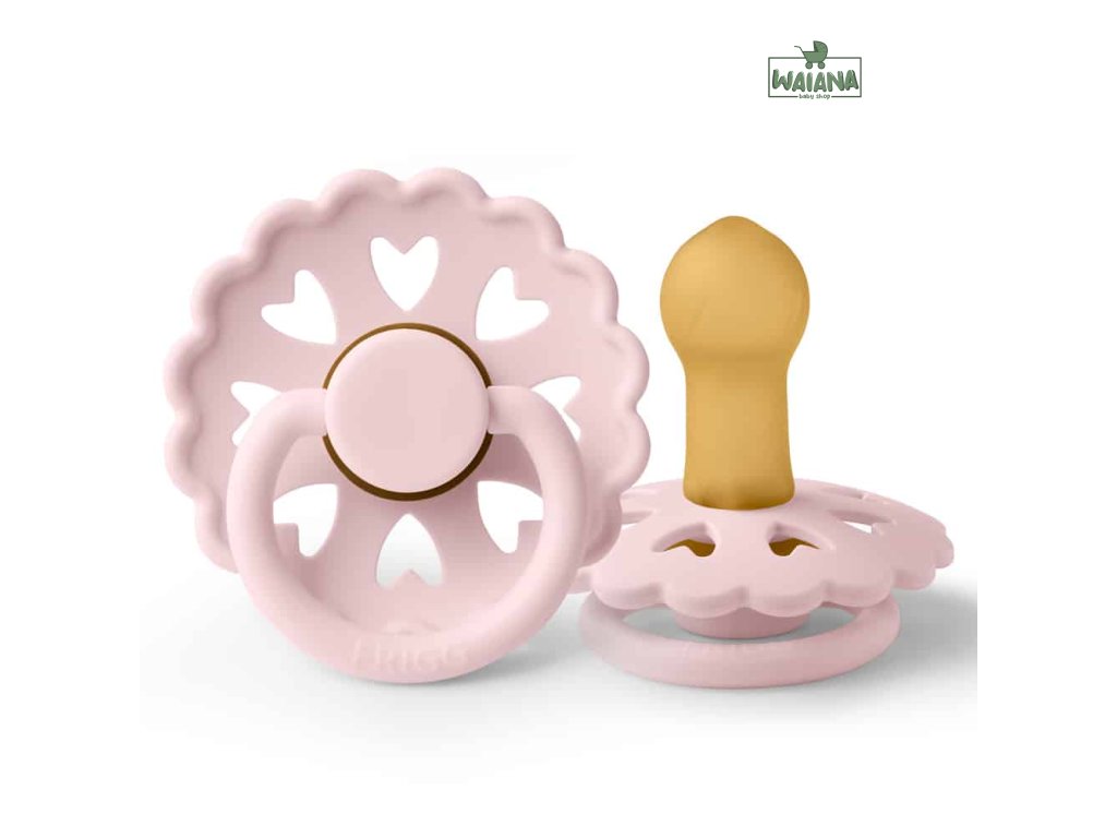 Kolekcia cumlíkov FRIGG Fairytale je inšpirovaná umeleckou tvorbou dánskeho autora H.C. Andersena. Vrúbkované okraje a malé srdiečka vo vnútri štítu napodobňujú jeden z jeho papierových výstrižkov. Každá farba cumlíka je pomenovaná podľa jeho známych rozprávok, ktoré dodávajú cumlíkom nádych fantázie. Tento mimoriadne krásny cumlík, s moderným dizajnom a elegantnými detailmi, upúta pozornosť každej štýlovej mamičky.